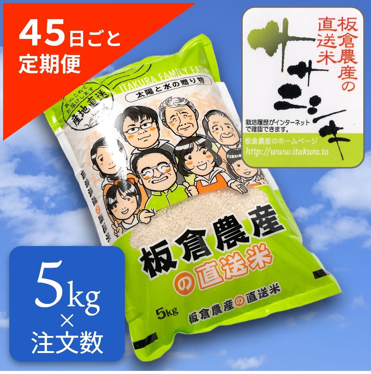 定期便では精米のみのご提供となります。胚芽米や玄米をご希望のお客様は、板倉農産公式サイトからお申込みいただける「かかし倶楽部」をご利用ください。